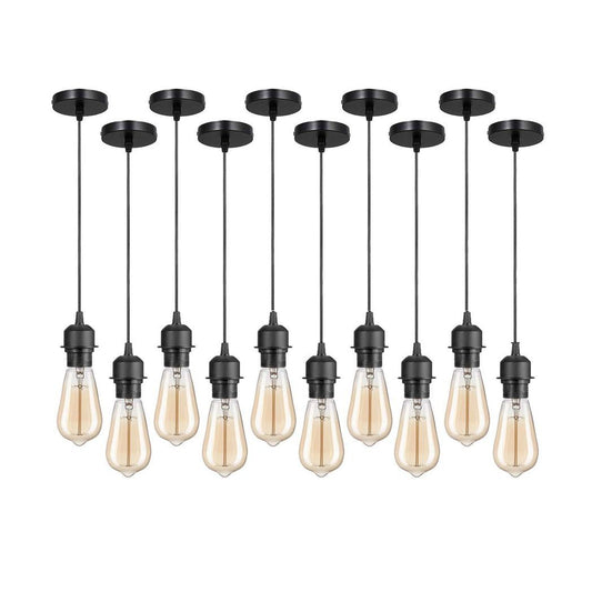 10 Pack Industrial Black Pendant Light, Lampshade Addable E27 Lamp Holder Light,