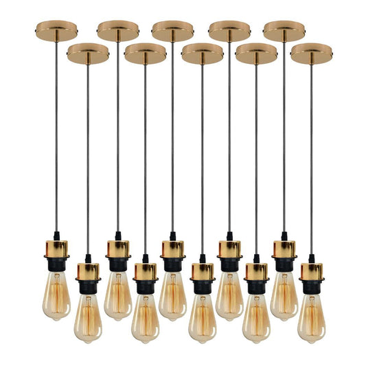 10 Pack Industrial French Gold Pendant Light, Lampshade Addable E27 Lamp Holder Light, E27 UK Holder Set With PVC Cable.