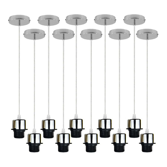 10 Pack Industrial Chrome Pendant Light, Lampshade Addable E27 Lamp Holder Light, E27 UK Holder Set With PVC Cable.