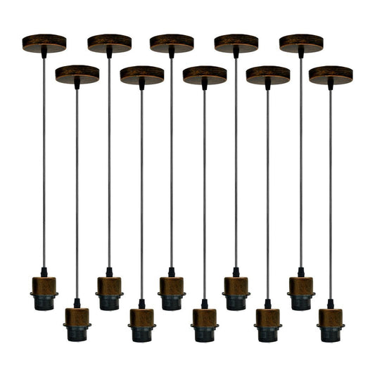 10 Pack Industrial Brushed Copper Pendant Light, Lampshade Addable E27 Lamp Holder Light