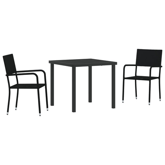 Garden Dining Set with Cushion 3 pcs Black Poly Rattan
