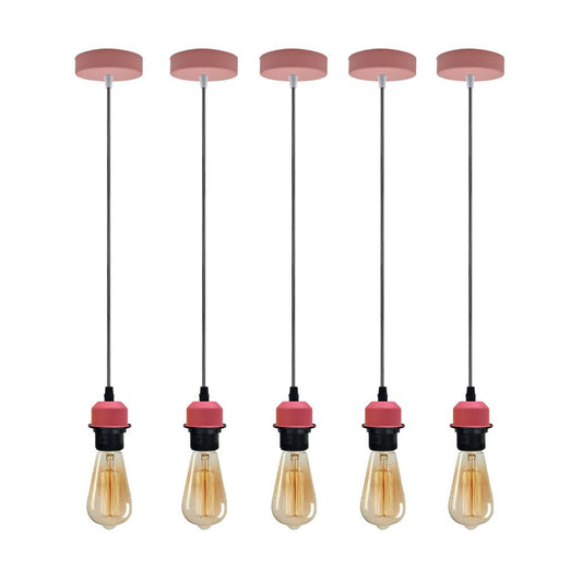 5 Pack Industrial Pink Pendant Light, Lampshade Addable E27 Lamp Holder Light,