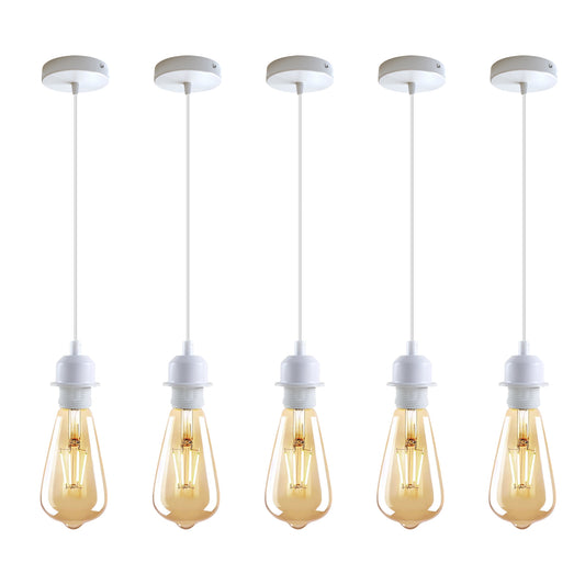 5 Pack Vintage Industrial Style White Ceiling Pendant Lamp E27 Base Metal Screw Lamp Holder
