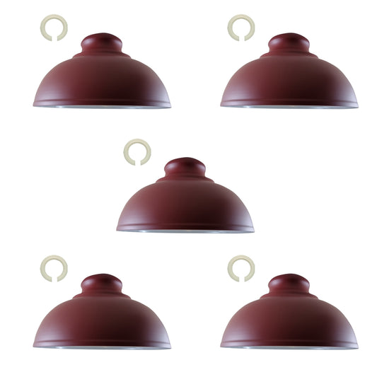 5 Pack vintage curvy shape burgundy lamp shade easy fit E27 base screw type industrial metal 29cm lamp light shades