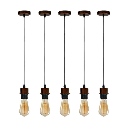 5 Pack Industrial Rustic Red Pendant Light, Lampshade Addable E27 Lamp Holder Light, E27 UK Holder Set With PVC Cable.