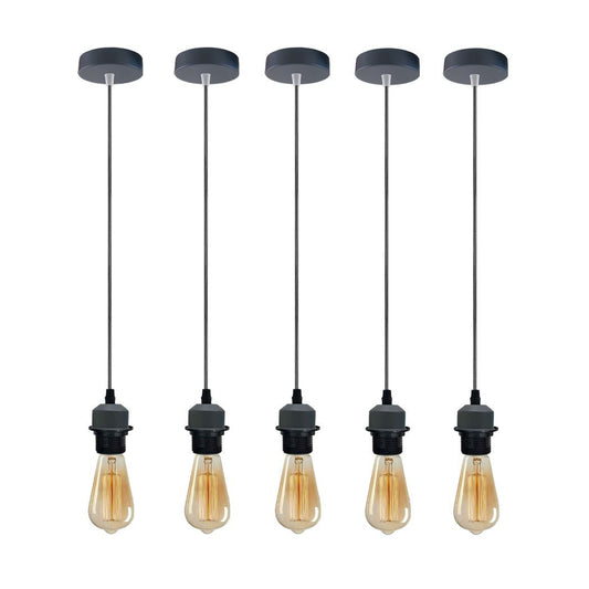 5 Pack Industrial Grey Pendant Light, Lampshade Addable E27 Lamp Holder Light,