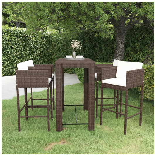 5 Piece Garden Bar Set with Cushions Poly Rattan Brown