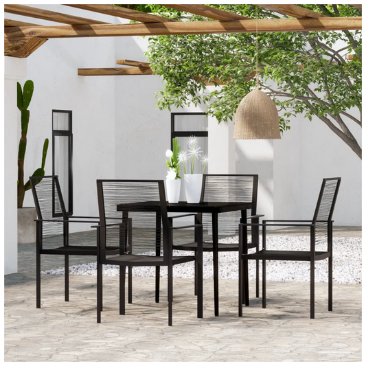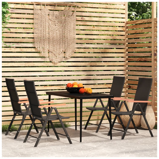5 Piece Garden Bistro Set with Cushions Black Poly Rattan