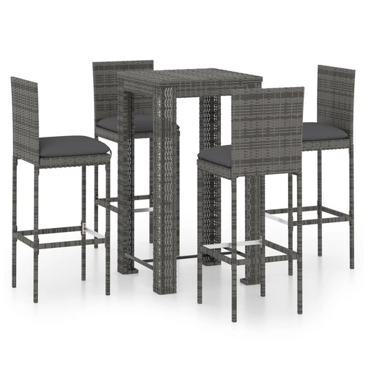 5 Piece Garden Bar Set with Cushions Poly Rattan Grey