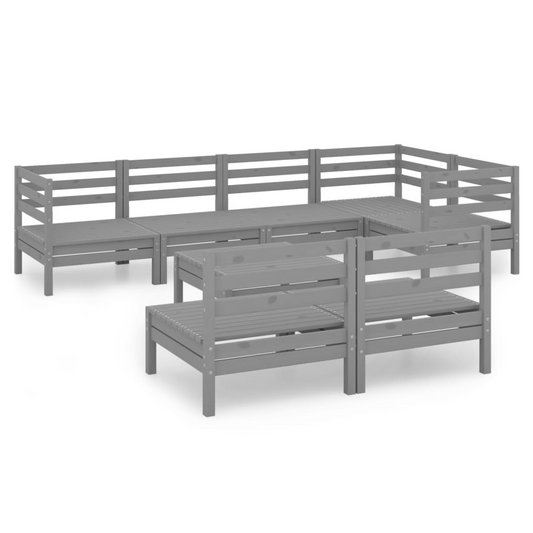 8 Piece Garden Lounge Set Solid Pinewood Grey