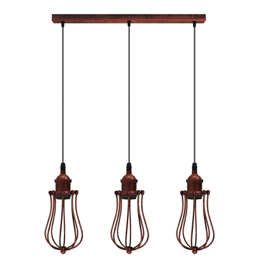 Vintage Industrial Rustic Red 3 Head Reactangle Base Pendant Cord E27 Metal Brushed Light Fitting Ballon Cage Lamp Shade
