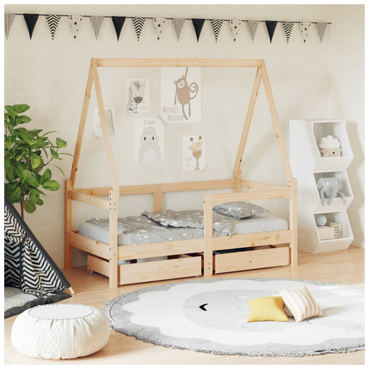 Kids Bed Frame with Drawers 70x140 cm Solid Wood Pine