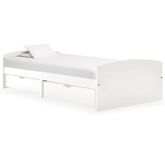 Bed Frame with 2 Drawers White Solid Pine Wood 90x200 cm