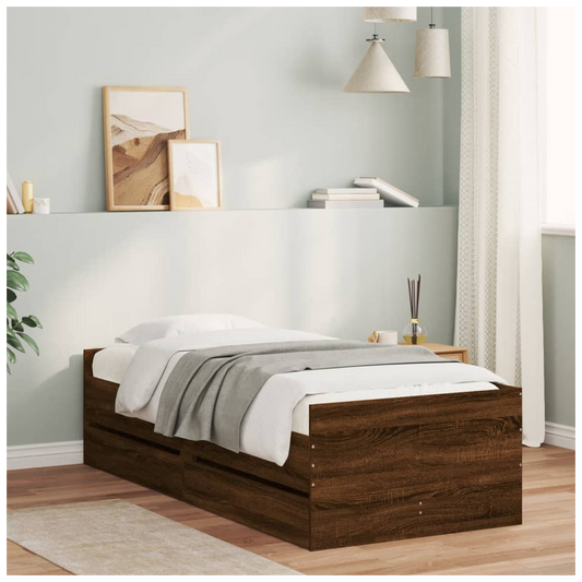 Bed Frame with Drawers Brown Oak 75x190 cm Small Single