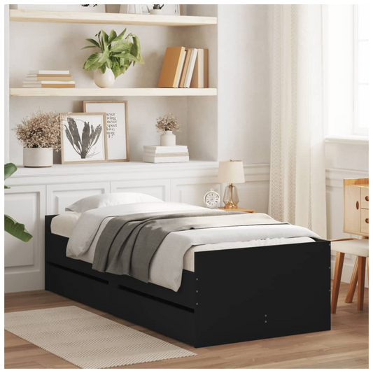 Bed Frame with Drawers Black 75x190 cm Small Single
