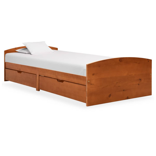 Bed Frame with 2 Drawers Honey Brown Solid Pine Wood 90x200 cm