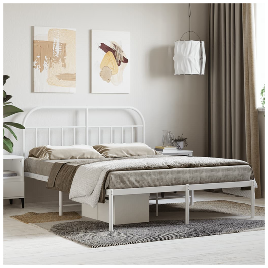 Metal Bed Frame with Headboard White 140x200 cm