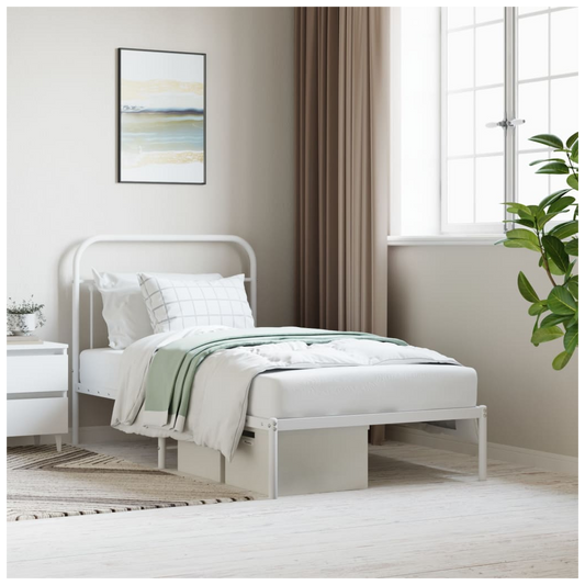 Metal Bed Frame with Headboard White 135x190 cm Double
