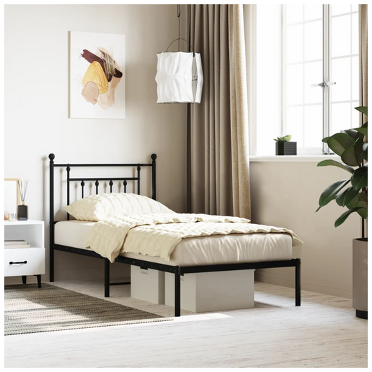 Metal Bed Frame with Headboard Black 150x200 cm King Size