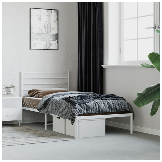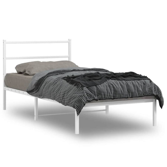 Metal Bed Frame with Headboard White 90x190 cm Single