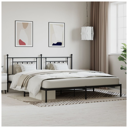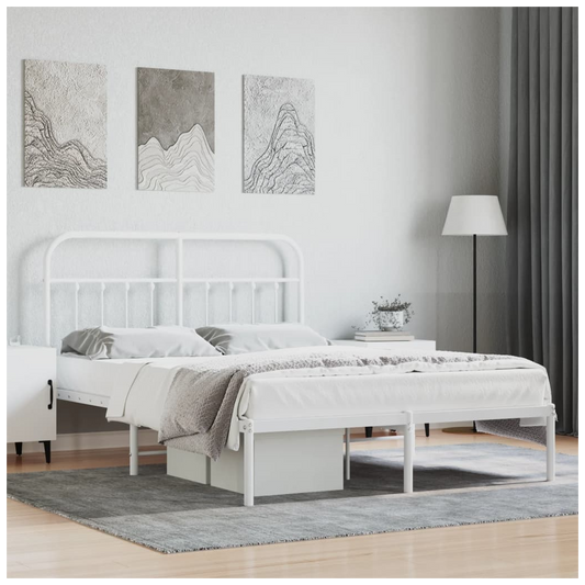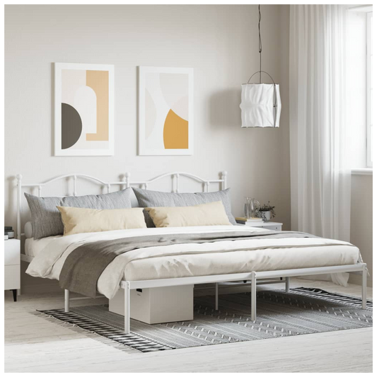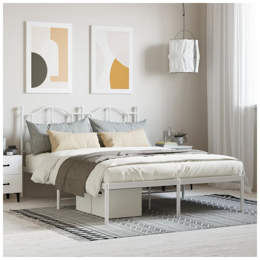 Metal Bed Frame with Headboard White 150x200 cm King Size