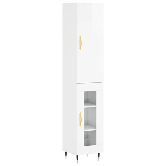 Highboard High Gloss White 34.5x34x180 cm Engineered Wood