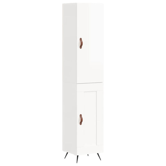Highboard High Gloss White 34.5x34x180 cm Engineered Wood