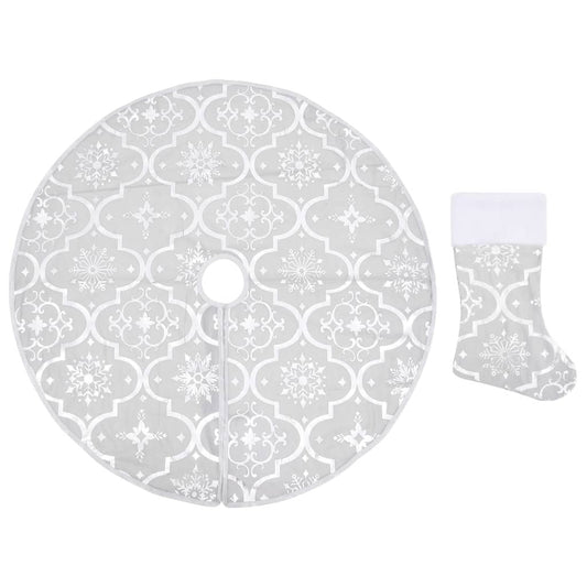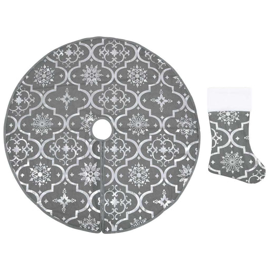 Luxury Christmas Tree Skirt with Sock Grey 90 cm Fabric