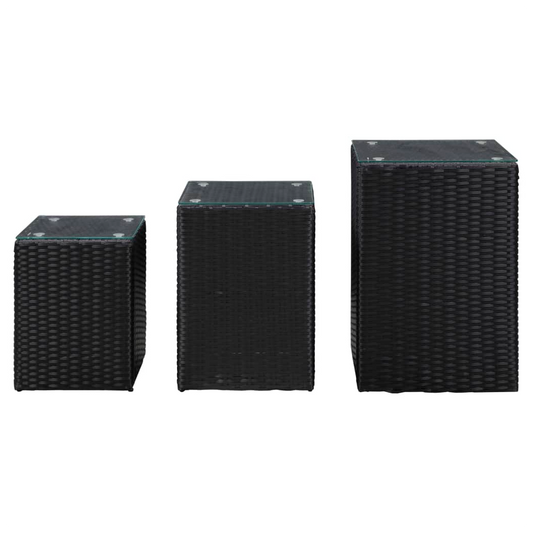 Side Tables 3 pcs with Glass Top Black Poly Rattan