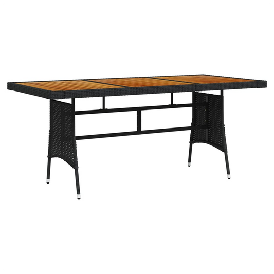 Garden Table Black 160x70x72 cm Poly Rattan & Solid Acacia Wood