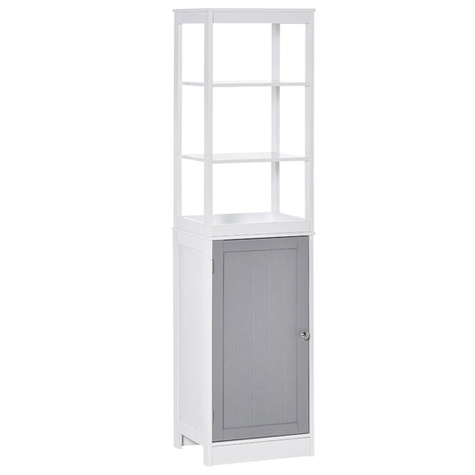 kleankin Bathroom Tall Storage Cabinet Organizer Tower w/ Door Shelves White
