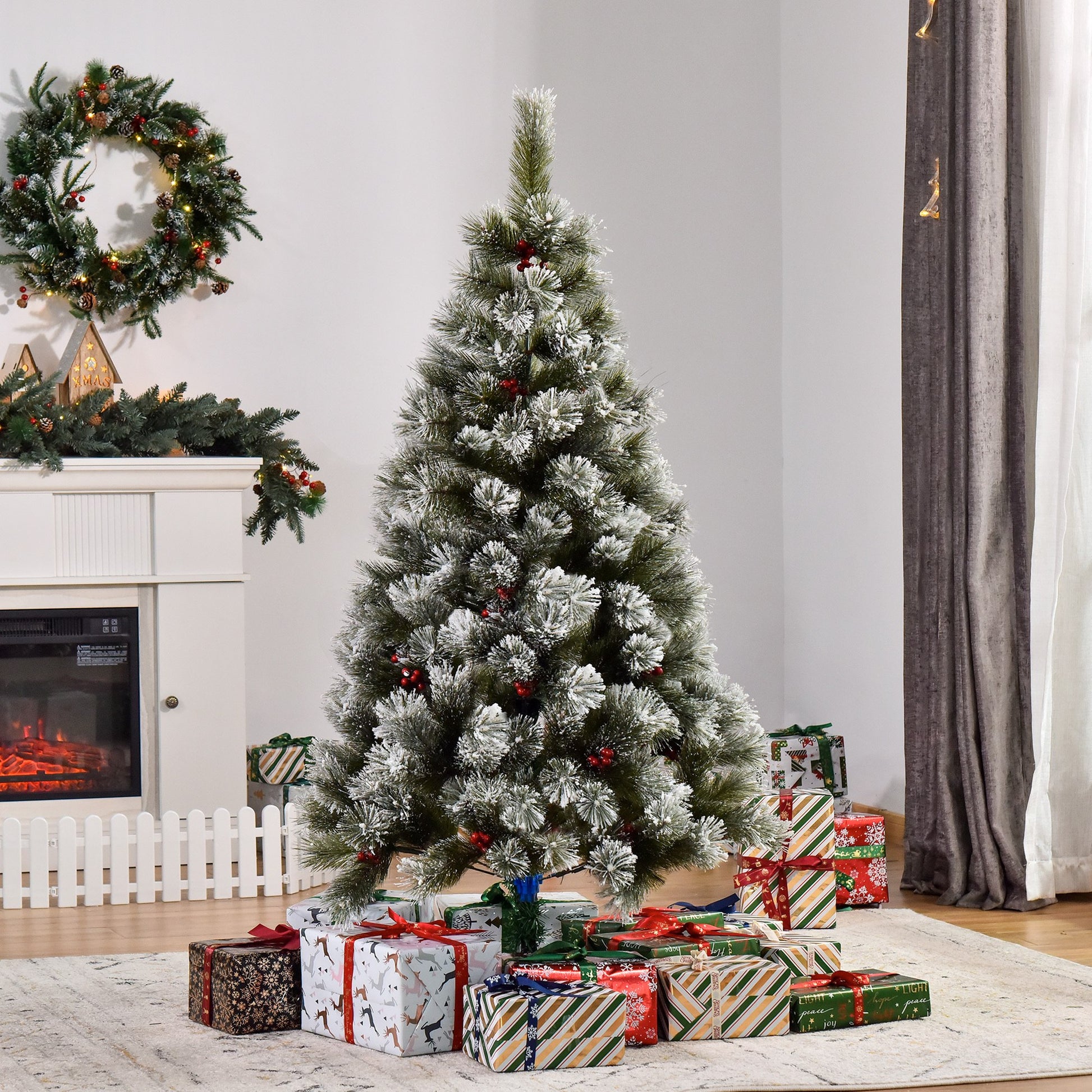 5ft Indoor Christmas Tree Artificial Berry Xmas Deco Metal Stand and 184 Tips
