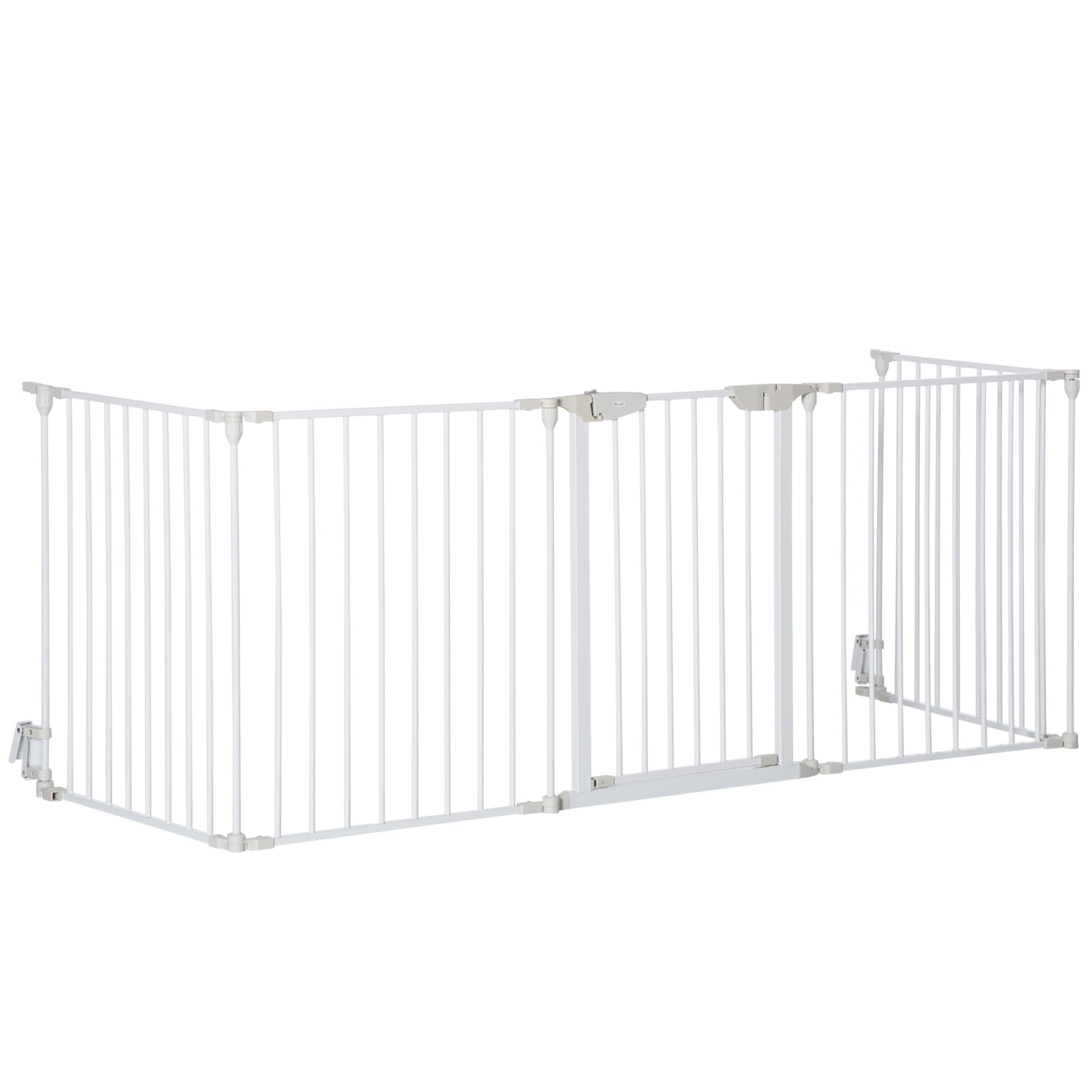 Pet Gate 5-Panel Dog Playpen for Indoor Stair Barrier W/ Walk Through Door White
