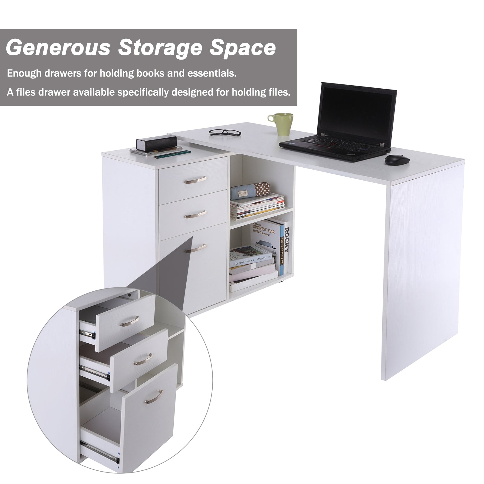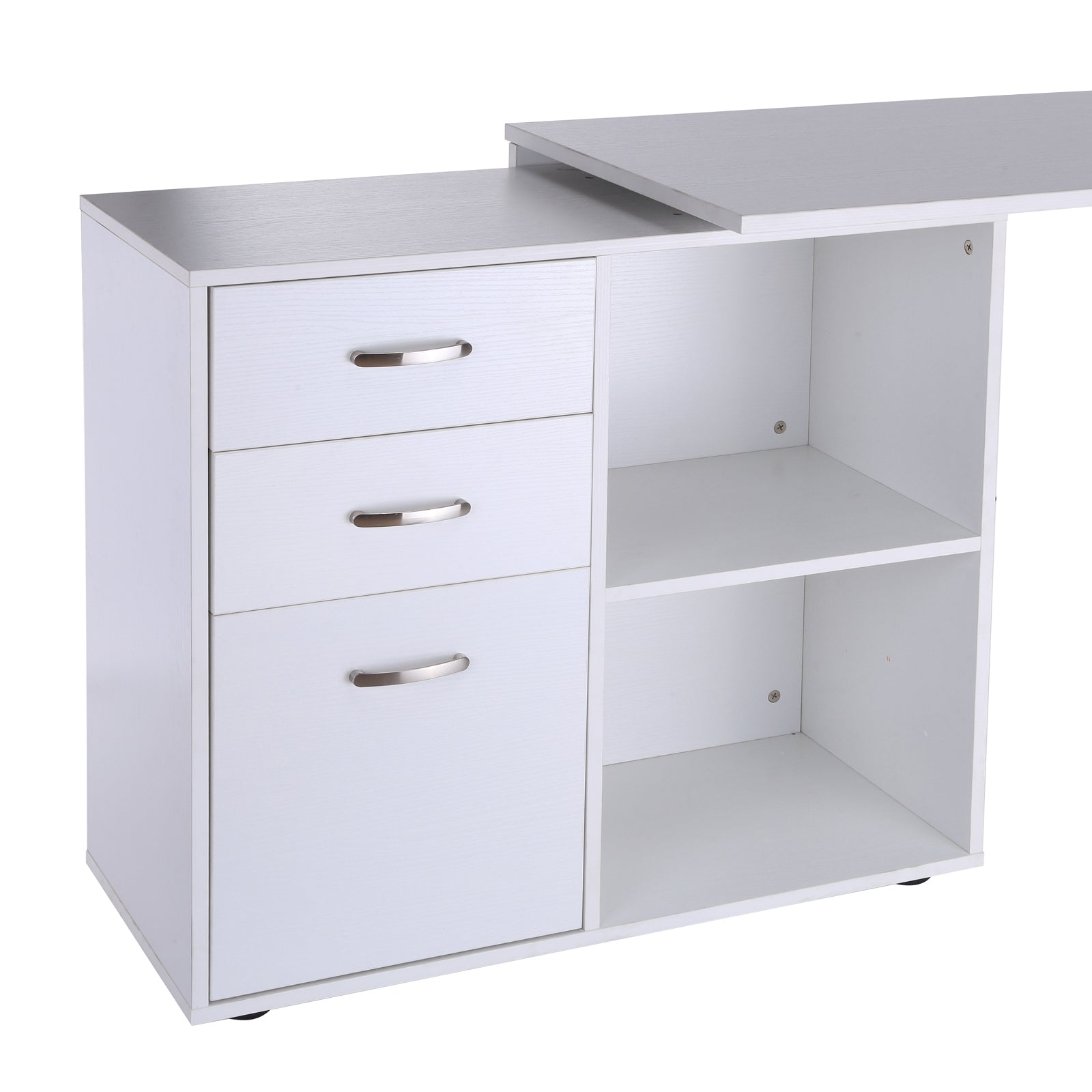 Home Office L Shape Computer Desk Workstation Drawer Shelf File Cabinet-White