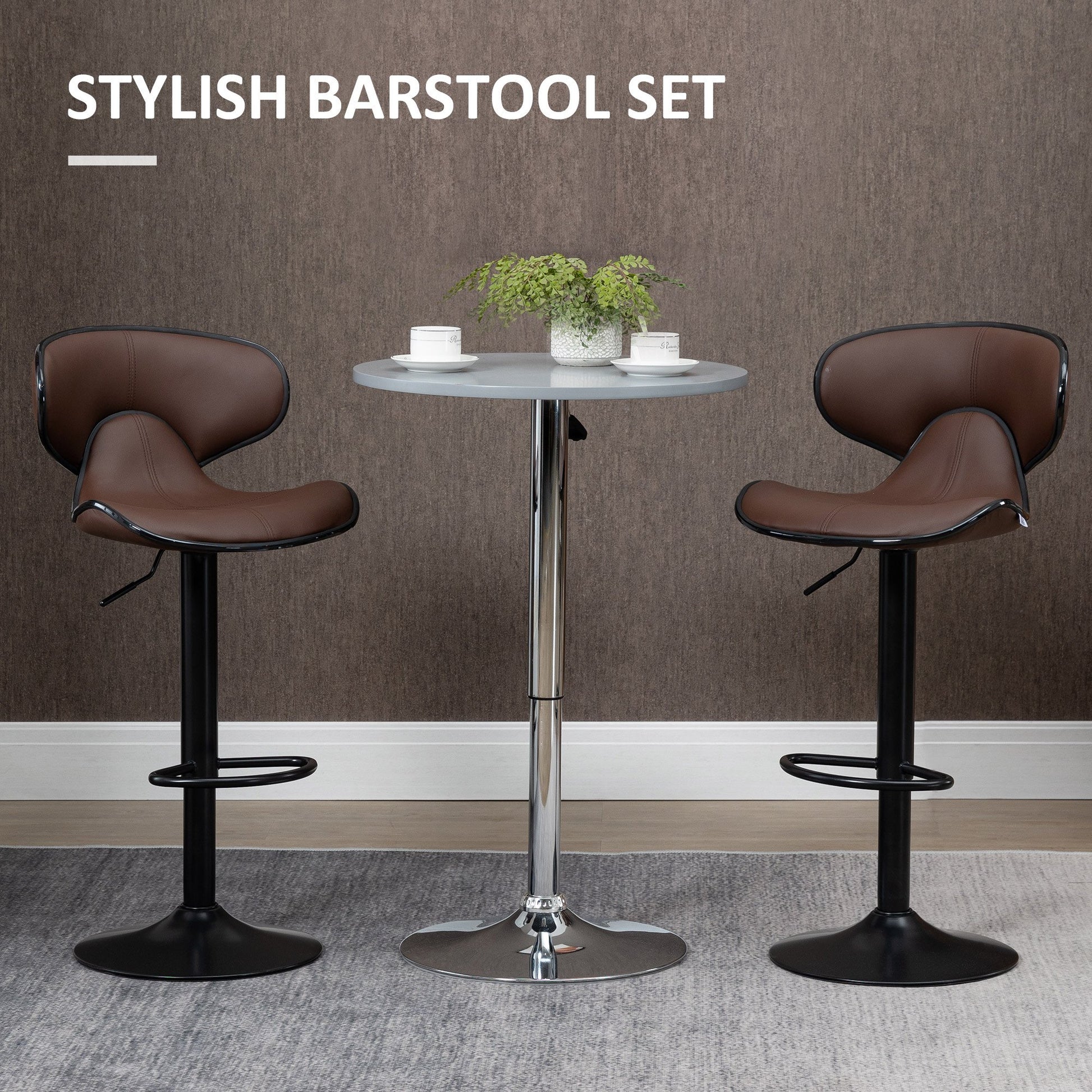 Set of 2, Barstools with Footrest and Backrest, Steel Frame Gas Lift Brown