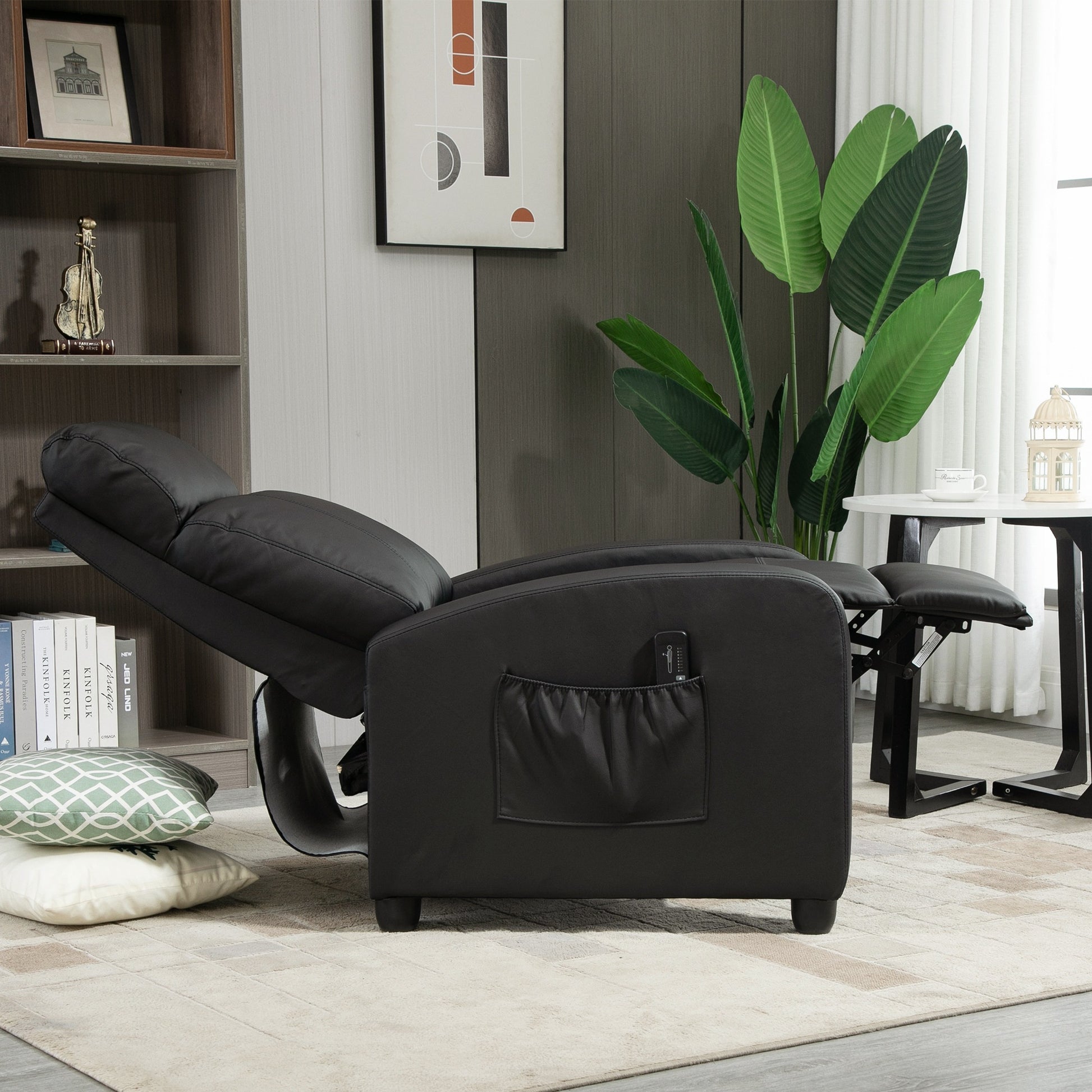 TWO MASSAGE POINTS AND ADJUSTABLE SETTINGS: Fitted in back to relax you. Eight modes to choose from, five intensity levels and two time settings.150RECLINING: Moves for you to lean back and relax. Works with the footrest - perfect for time-outs at home or in the office.COMFORTABLE