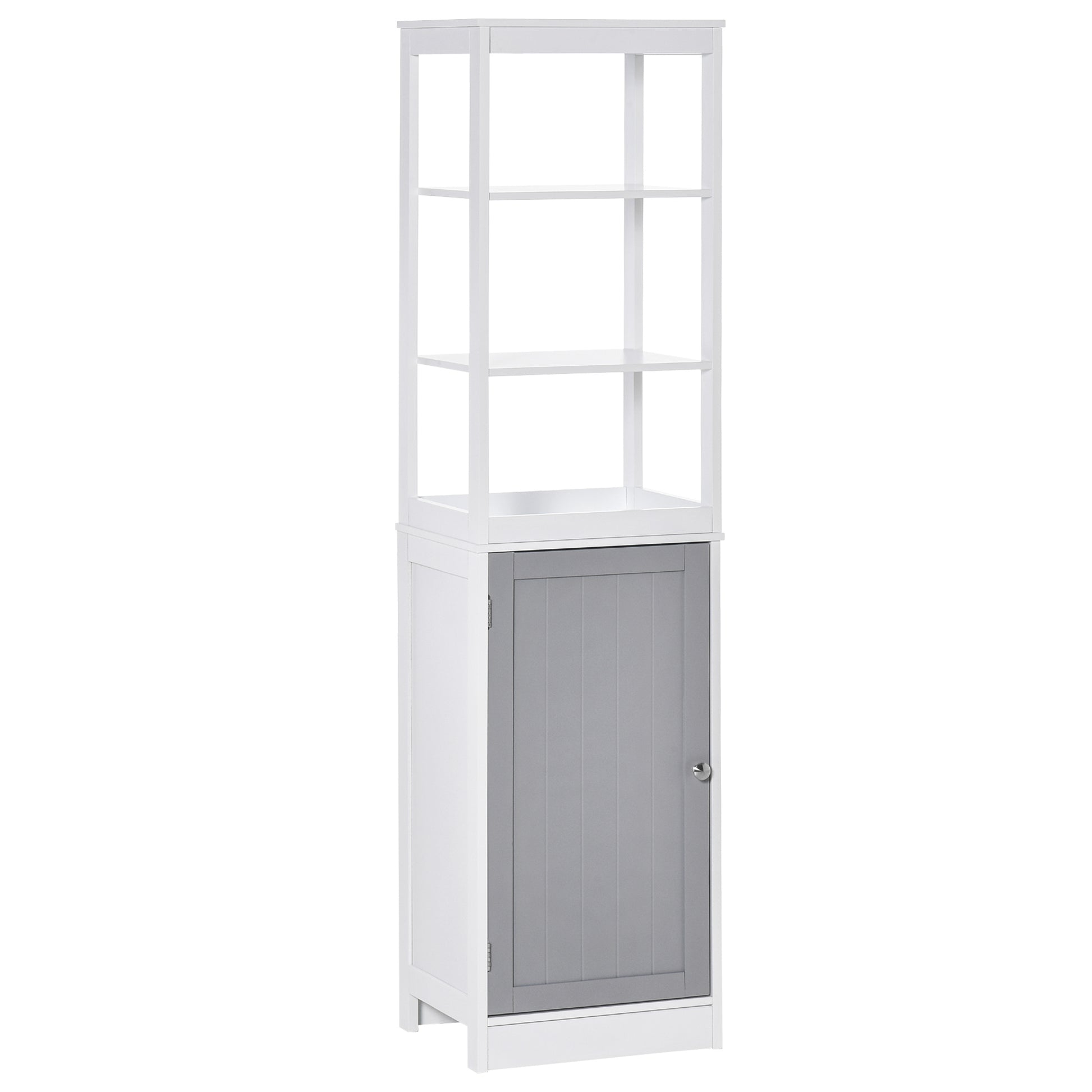 Multi-storage: Features top shelves for towels and a bottom cupboard to offer out-of-sight storage. Suitable for home and office bathrooms.Slimline design: Tall and narrow, it's perfect for spaces with little space to offer.Sturdy: Made from MDF, the structure is durable and sturdy, suitable for everyday use. White and grey colourway is neutral, works well with many interior styles.Dimension: 160H x 40W x 32Dcm. Shelves: 25.5H x 36W x 31.5Dcm. Cupboard inner: 67H x 35.5W x 29.5Dcm.Maximum load 24KG. Assembly required.