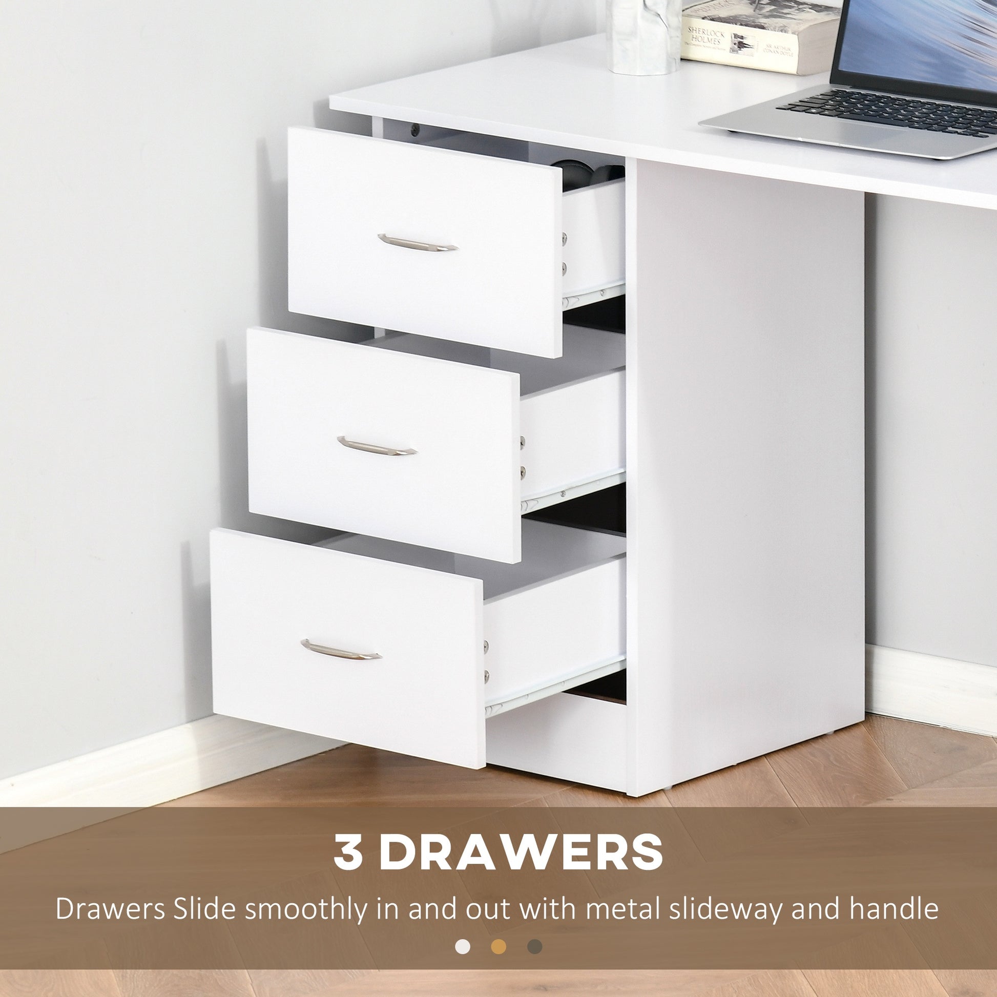 120cm Computer Desk PC Table Workstation w/ 3 Shelf & Drawers White
