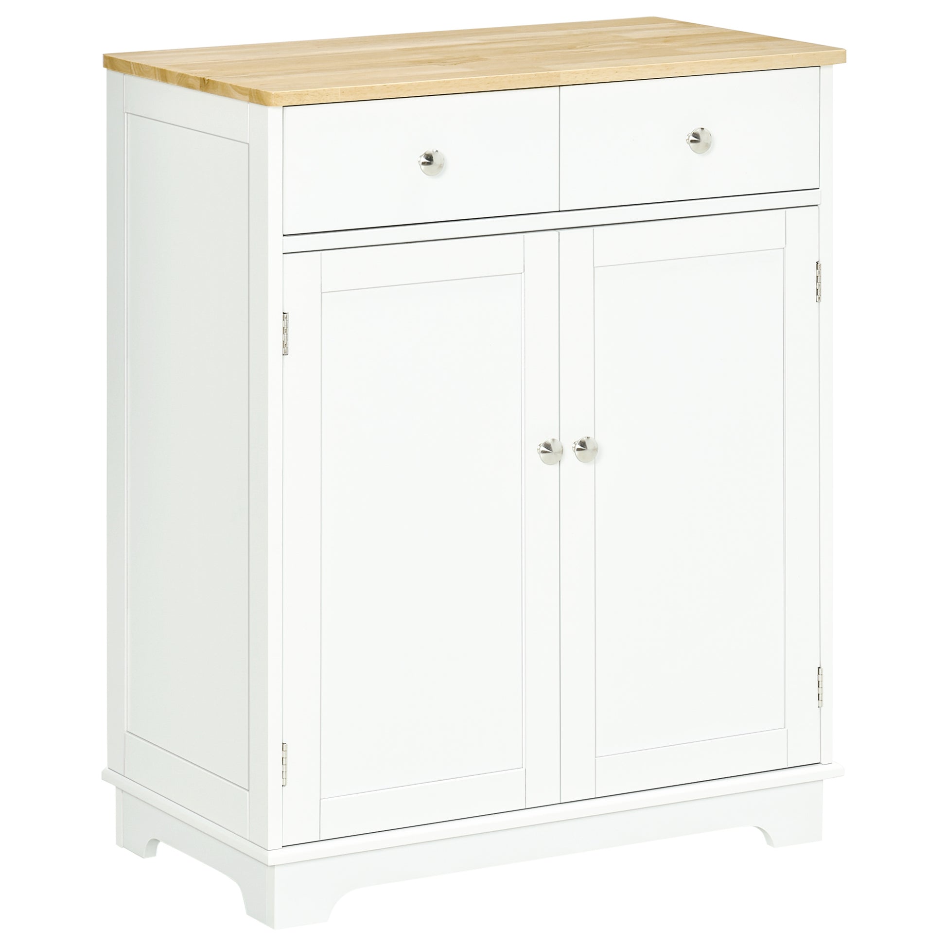 Made of easy clean rubber wood and MDF, this HOMCOM cabinet is perfect for any kitchen and other rooms! The two large drawers and one cabinet with shelf adjustable can provide you more possibility to store. Polished surfaces and table corners are very safe and friendly to kids. Don't hesitate to take it home, it was better than you could have even imagined!