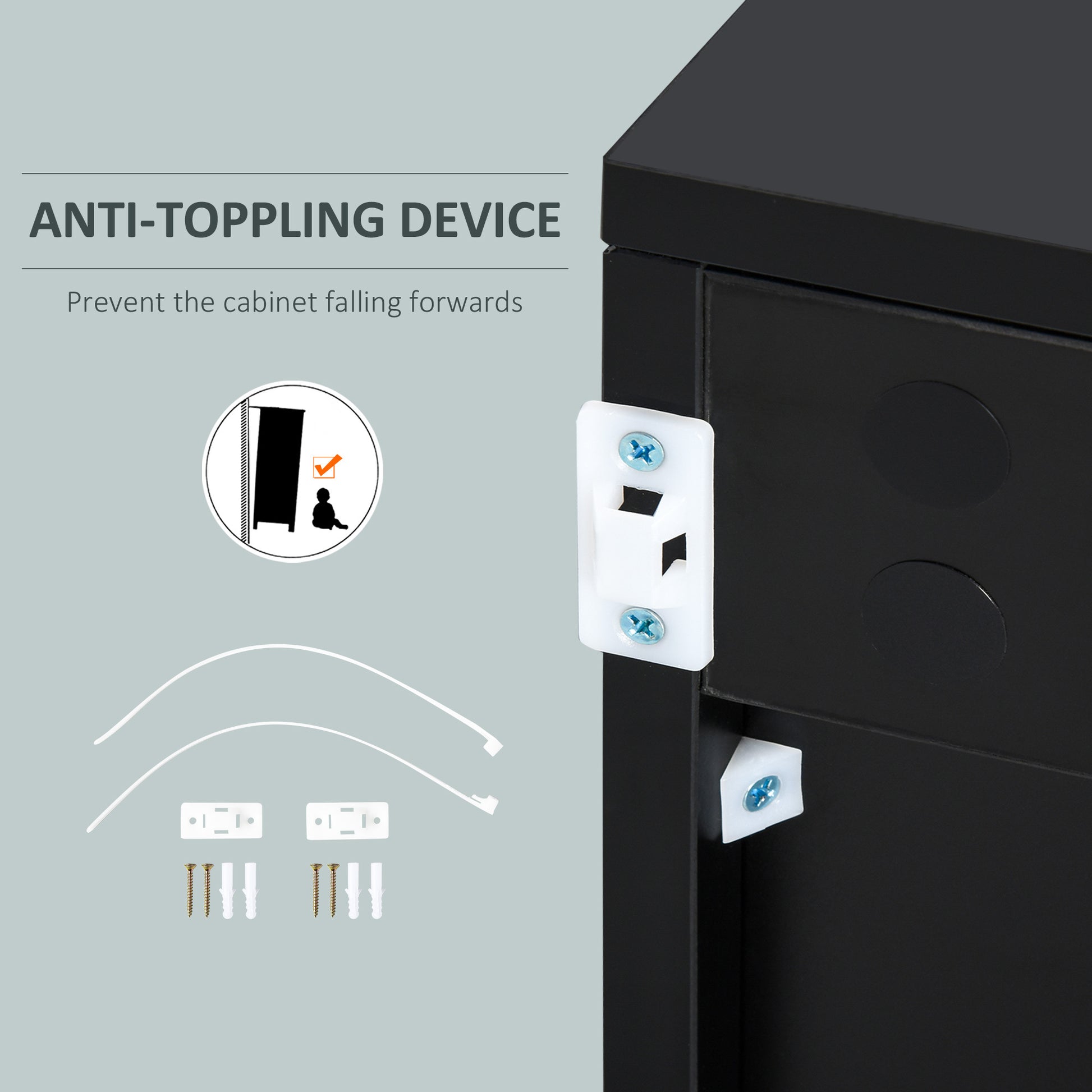 Side Cabinet 2 Door Cabinet and 2 Drawer for Home Office Grey Black