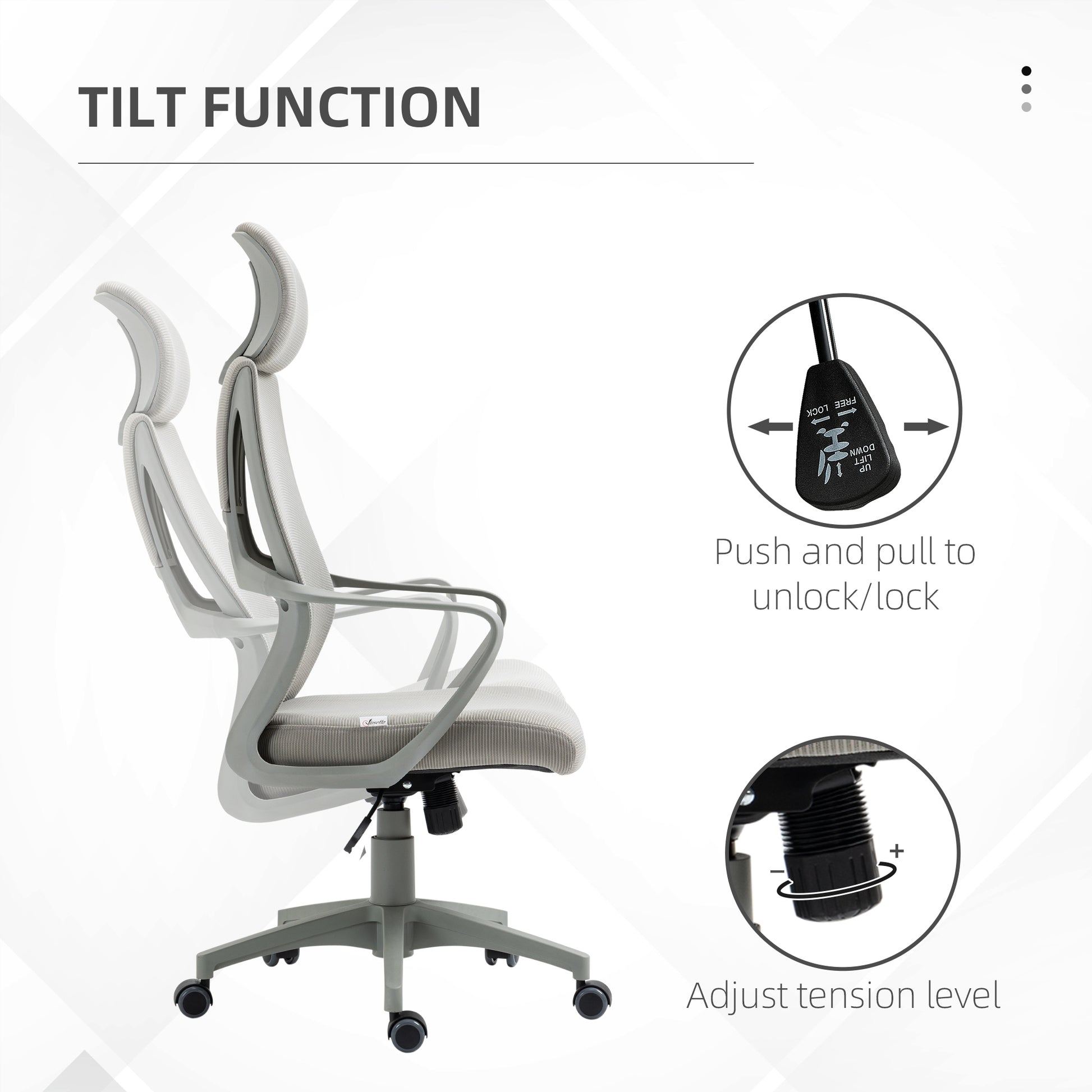 Mesh Back Office Chair w/ Adjustable Height Padded Headrest Grey Vinsetto