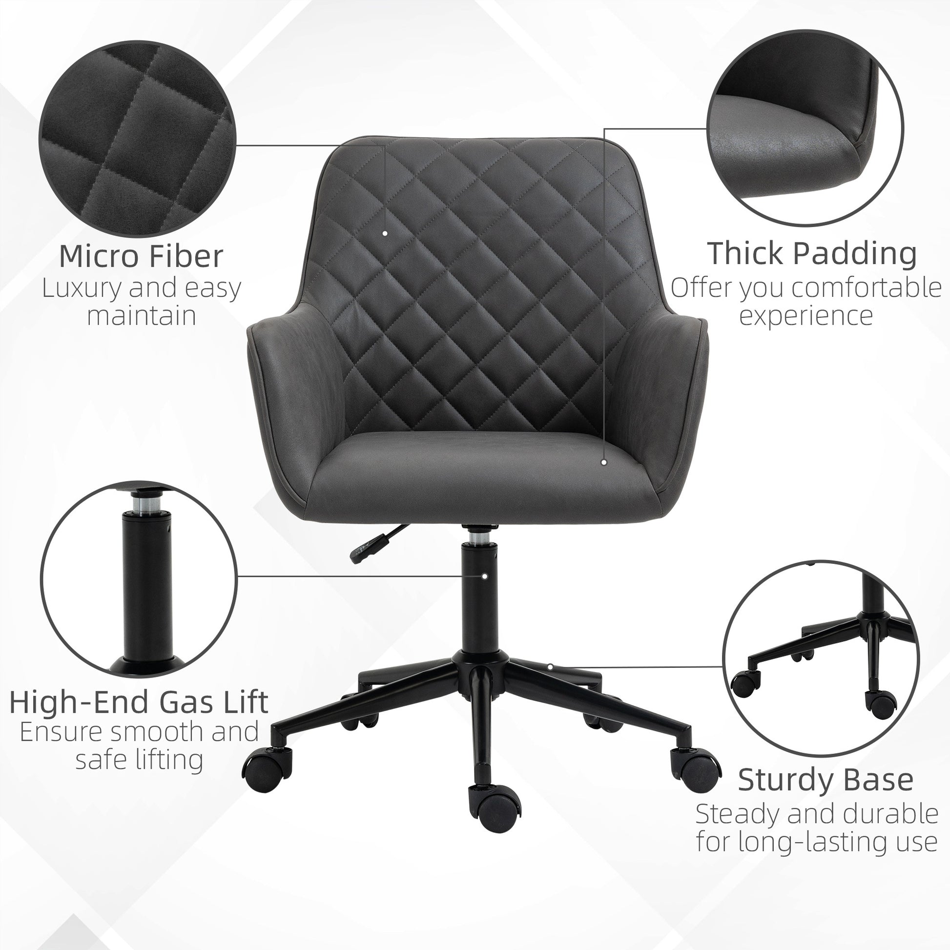 Argyle Office Chair Leather-Feel Fabric Home Study Leisure Wheels Vinsetto