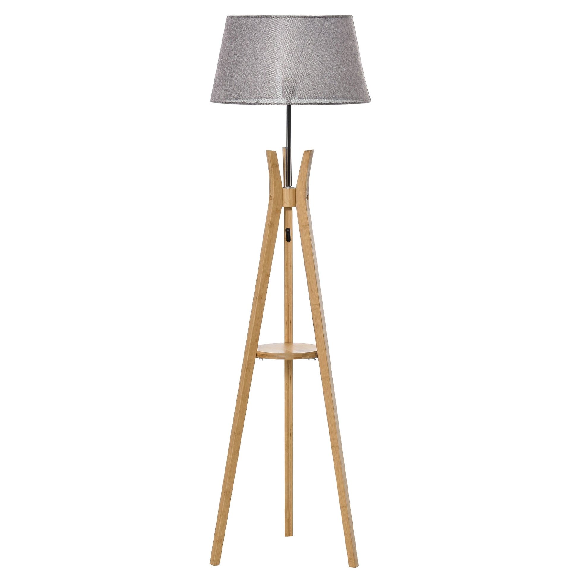 Tripod Floor Lamp Light E27 Base w/ Fabric Shade Storage Shelf, Grey HOMCOM