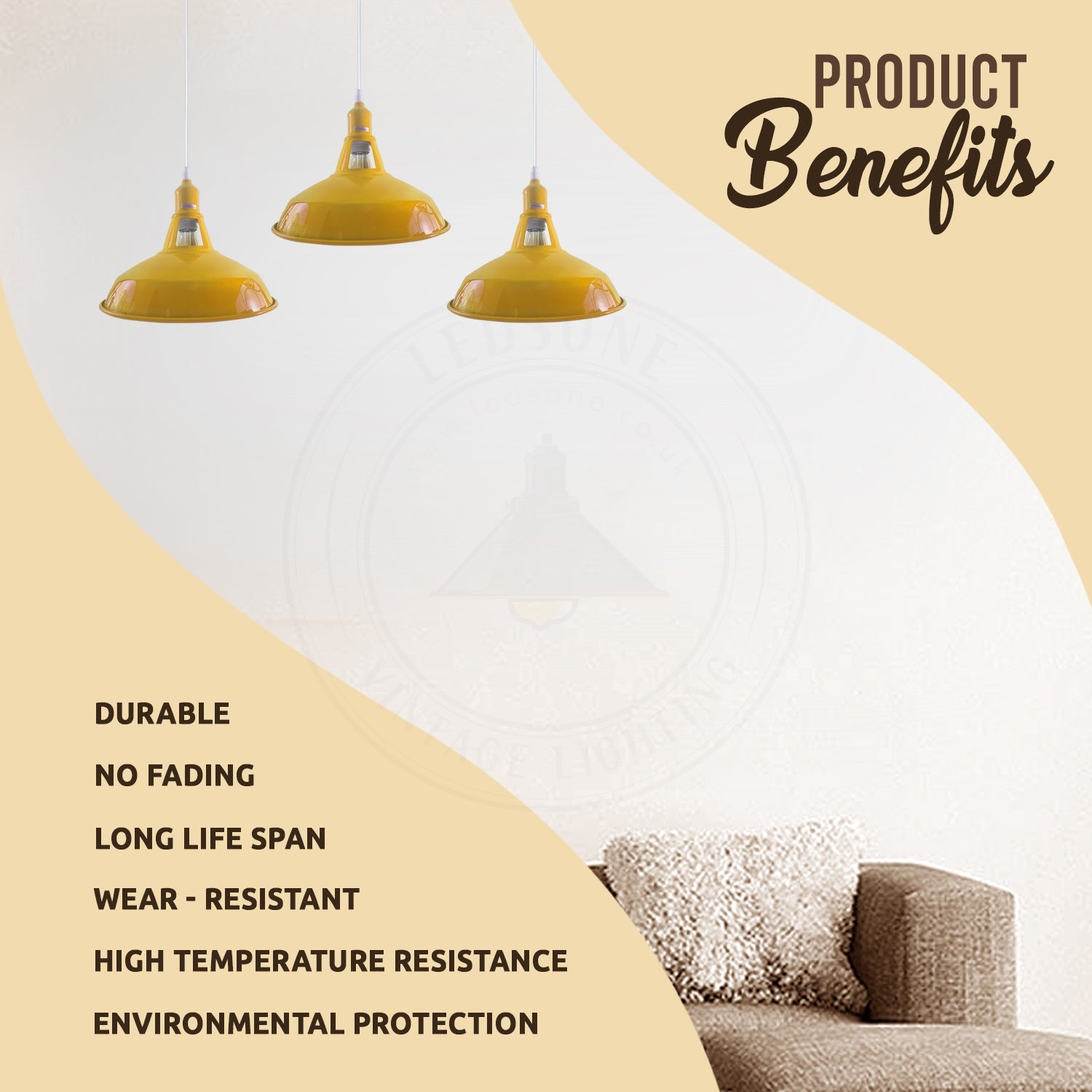 Features:The 3 way pendant light kit is designed with contemporary style.A wonderful choice for achieving your desired fashion and functional needs of your home.Designed with E27 lamp base, filament retro bulbs will be a good choice to bring out the character of this fitting.All the wire and hanging cord are comply with British standard.It can be dimmable when, used with a matching dimmer switch and dimmable bulb.Item Specifications / Technical Details:Item Type: Pendant lightStyle: Vintage/RetroVoltage: AC110V-240VLamp holder quantity: 3Material: Metal and PVCBulb Requirements: Requires E27 max 60WBulb Type: Compatible with all kinds of E27 BulbsInstallation Area: IndoorPower Source: HardwiredDimmable: Yes (required a dimmable bulb and dimmer switch)Wire length: 95cm Adjustable cableEnergy consumption: A+ with LED bulbSloped ceiling adaptable.Package included:1 x Ceiling rose and all the necessary fittings3 x 95cm Adjustable Pendant holder with cable3 x LampshadeNote:Due to the light and screen difference, the colour of the item may be slightly different from the pictures.Please allow 1-2cm differences due to manual measurement.Delivery times can vary depending on the destination location. We would advise against booking an Electrician or fitter until you have received all items in satisfactory condition.Please kindly confirm the colour of the lamp before you buy it.