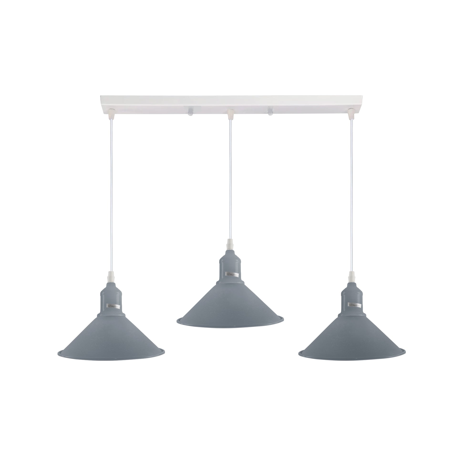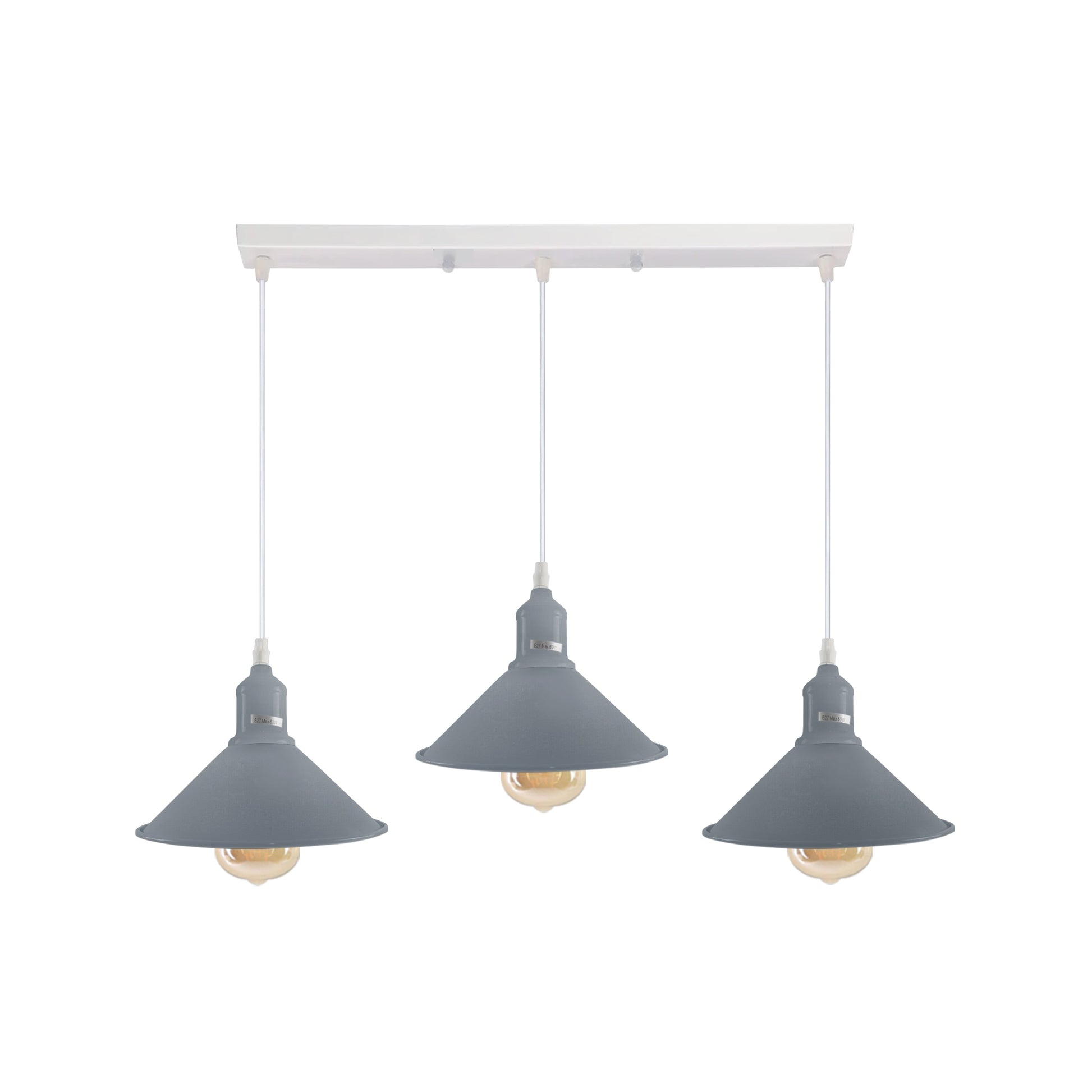 Industrial Vintage Loft Kitchen Bar 3 Lights Fittings Ceiling Cone Metal E27 Grey without bulb