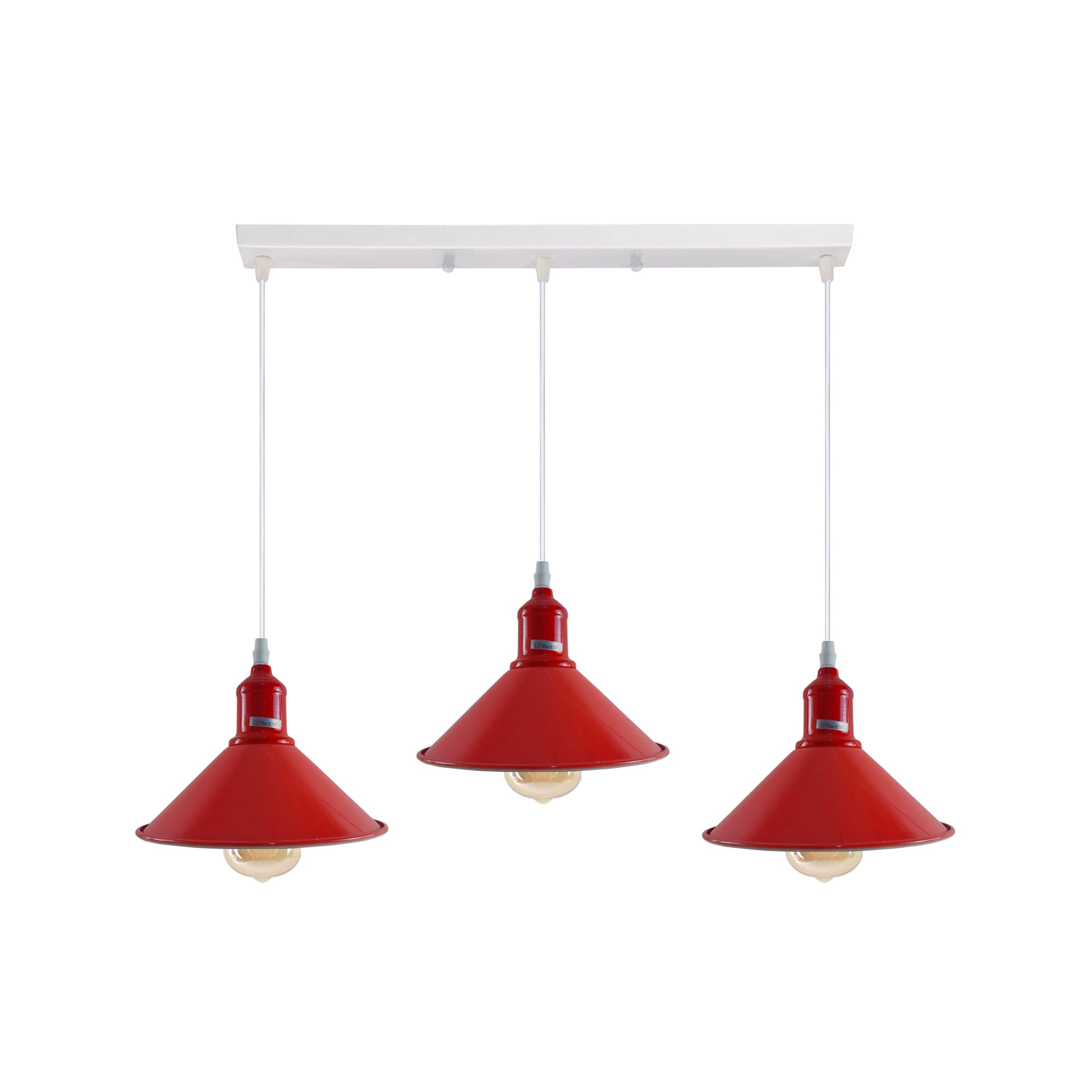 Industrial Vintage Loft Kitchen Bar 3 Lights Fittings Ceiling Cone Metal E27 Red with bulb
