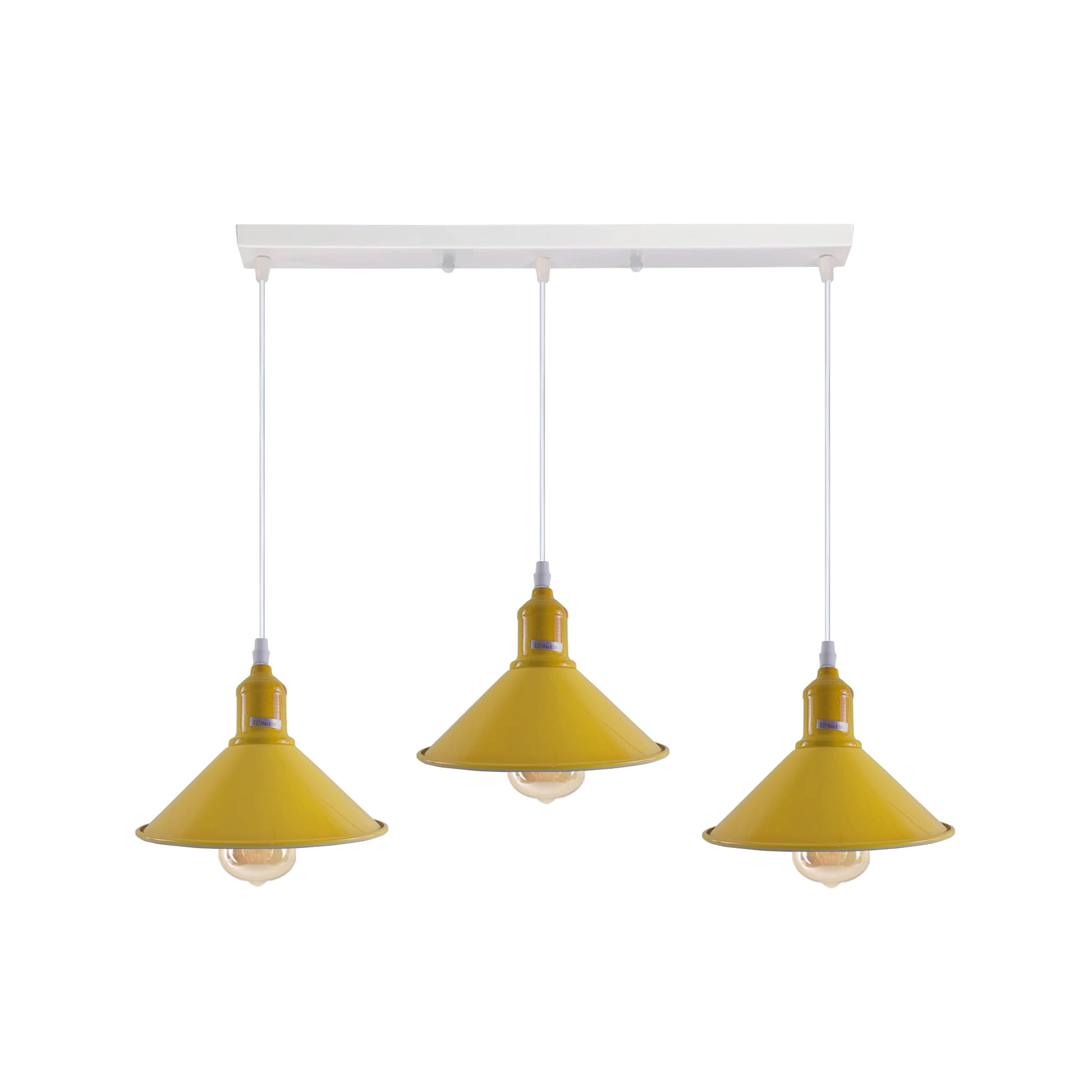 Industrial Vintage Loft Kitchen Bar 3 Lights Fittings Ceiling Cone Metal E27 Yellow with bulb