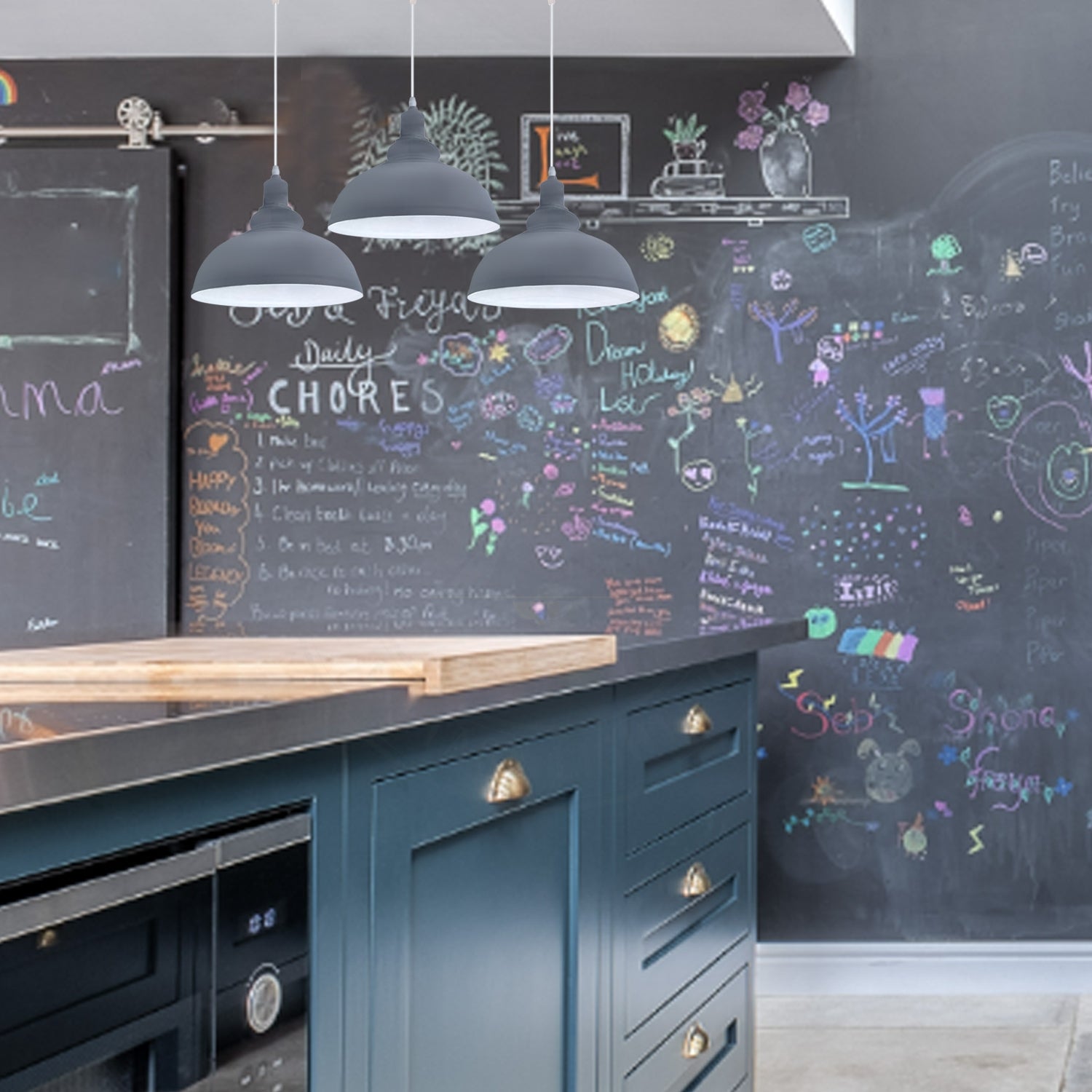 Features:The 3 way pendant light kit is designed with contemporary style.A wonderful choice for achieving your desired fashion and functional needs of your home.Designed with E27 lamp base, filament retro bulbs will be a good choice to bring out the character of this fitting.All the wire and hanging cord are comply with British standard.It can be dimmable when, used with a matching dimmer switch and dimmable bulb.Item Specifications / Technical Details:Item Type: Pendant lightStyle: Vintage/RetroVoltage: AC110V-240VLamp holder quantity: 3Material: Metal and PVCBulb Requirements: Requires E27 max 60WBulb Type: Compatible with all kinds of E27 BulbsInstallation Area: IndoorPower Source: HardwiredDimmable: Yes (required a dimmable bulb and dimmer switch)Wire length: 95cm Adjustable cableEnergy consumption: A+ with LED bulbSloped ceiling adaptable.Package included:1 x Ceiling rose and all the necessary fittings3 x 95cm Adjustable Pendant holder with cable3 x LampshadeNote:Due to the light and screen difference, the colour of the item may be slightly different from the pictures.Please allow 1-2cm differences due to manual measurement.Delivery times can vary depending on the destination location. We would advise against booking an Electrician or fitter until you have received all items in satisfactory condition.Please kindly confirm the colour of the lamp before you buy it.