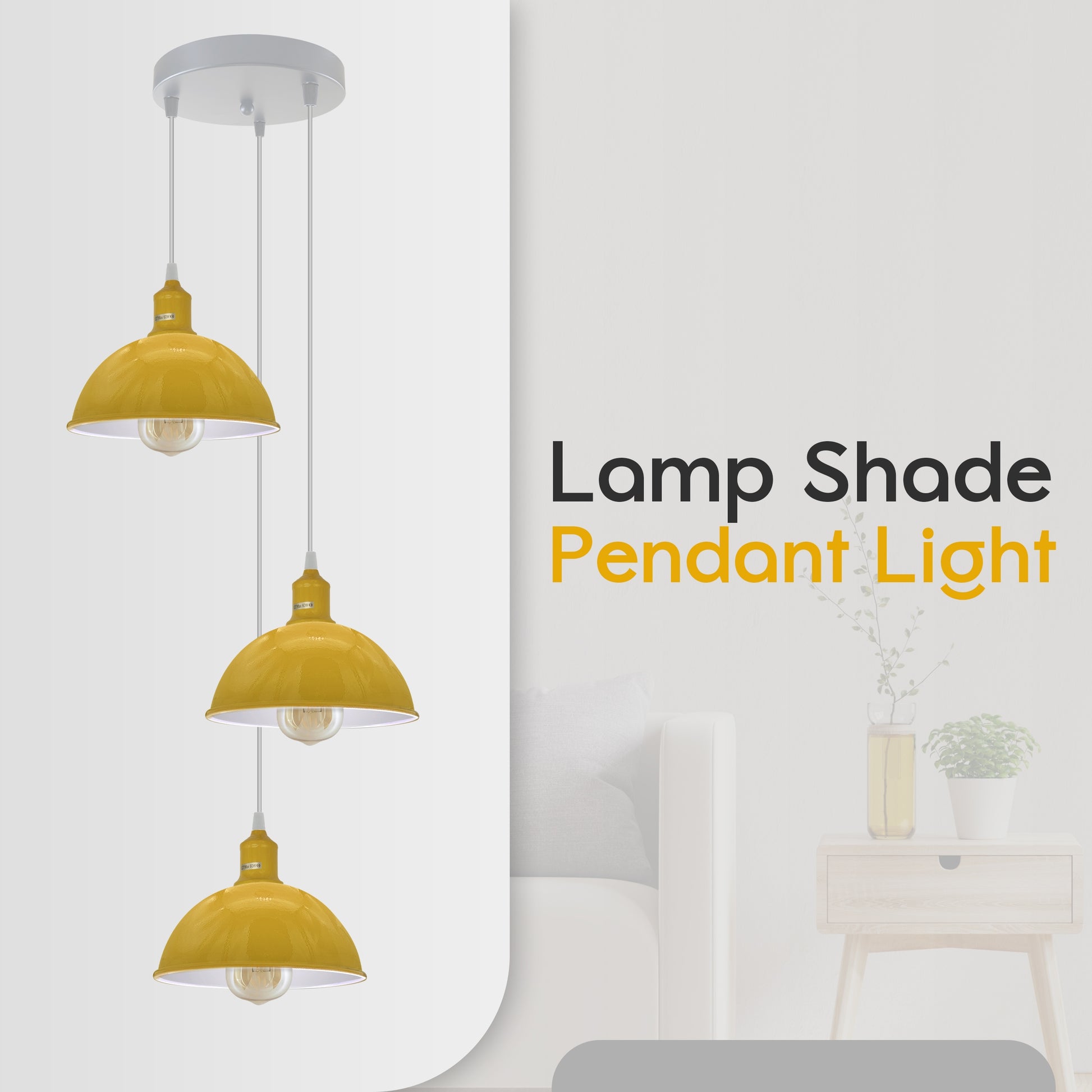 Features: •The pendant lamp is designed to a unique style which will bring an elegant-rich look to the space where ever you fix it.•Designed with E27 lamp base, E27 standard bulb, you can choose any bulbs with the E27 interface.•All the wire and hanging cord are comply with the British standard.•When used with a matching dimmer switch and dimmable bulb, it can be dimmable.•Safe and durable with CE approval and earth connection.Item Specifications / Technical Details•Item Type: Pendant Light•Style: Vintage/Retro•Voltage: AC110V-240V•Lamp holder quantity: 3•Material: Metal and PVC•Dimension of the shade: 21cm W X 10cm H•Ceiling base diameter: 20cm•Bulb Requirements: Requires E27 max 60W•Bulb Type: Compatible with all kinds of E27 Bulbs•Installation Area: Indoor•Power Source: Hardwired•Wire length: 95cm Adjustable cable•Sloped ceiling adaptable.Package included:•1 x Pendant Lamp Base with fitting accessories•3 x 95cm Adjustable cable with holder•3 x Lamp Shades