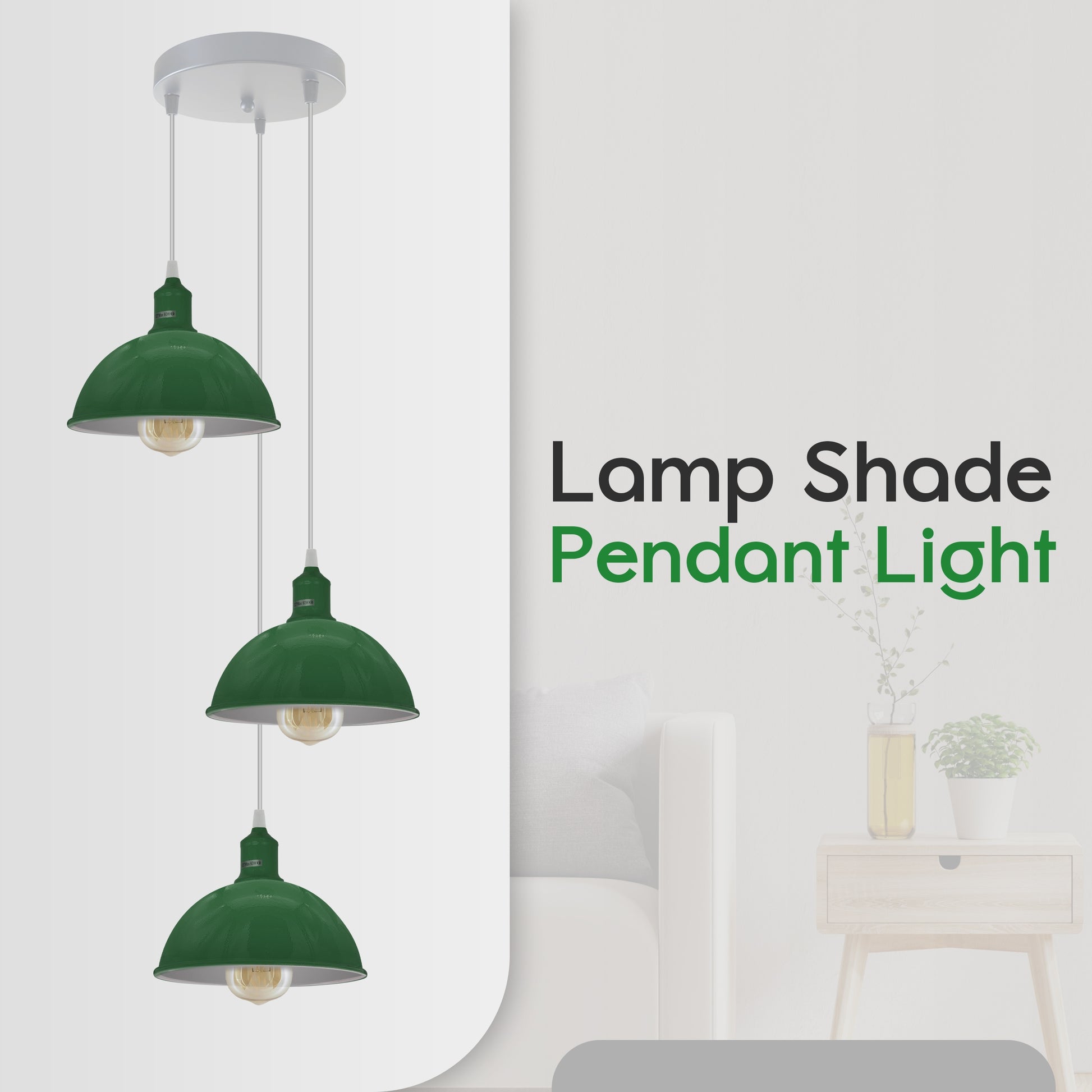 Features: •The pendant lamp is designed to a unique style which will bring an elegant-rich look to the space where ever you fix it.•Designed with E27 lamp base, E27 standard bulb, you can choose any bulbs with the E27 interface.•All the wire and hanging cord are comply with the British standard.•When used with a matching dimmer switch and dimmable bulb, it can be dimmable.•Safe and durable with CE approval and earth connection.Item Specifications / Technical Details•Item Type: Pendant Light•Style: Vintage/Retro•Voltage: AC110V-240V•Lamp holder quantity: 3•Material: Metal and PVC•Dimension of the shade: 21cm W X 10cm H•Ceiling base diameter: 20cm•Bulb Requirements: Requires E27 max 60W•Bulb Type: Compatible with all kinds of E27 Bulbs•Installation Area: Indoor•Power Source: Hardwired•Wire length: 95cm Adjustable cable•Sloped ceiling adaptable.Package included:•1 x Pendant Lamp Base with fitting accessories•3 x 95cm Adjustable cable with holder•3 x Lamp Shades